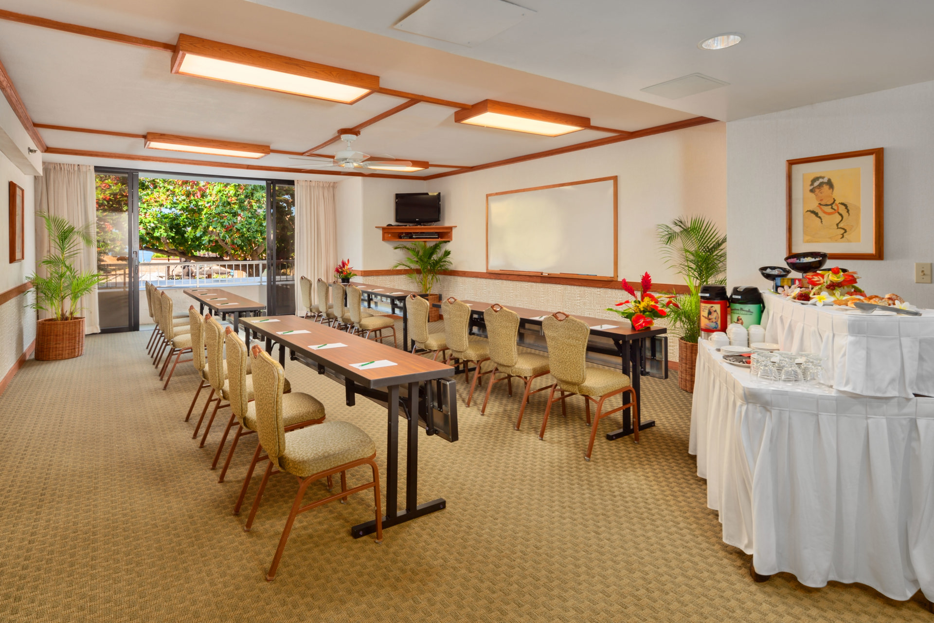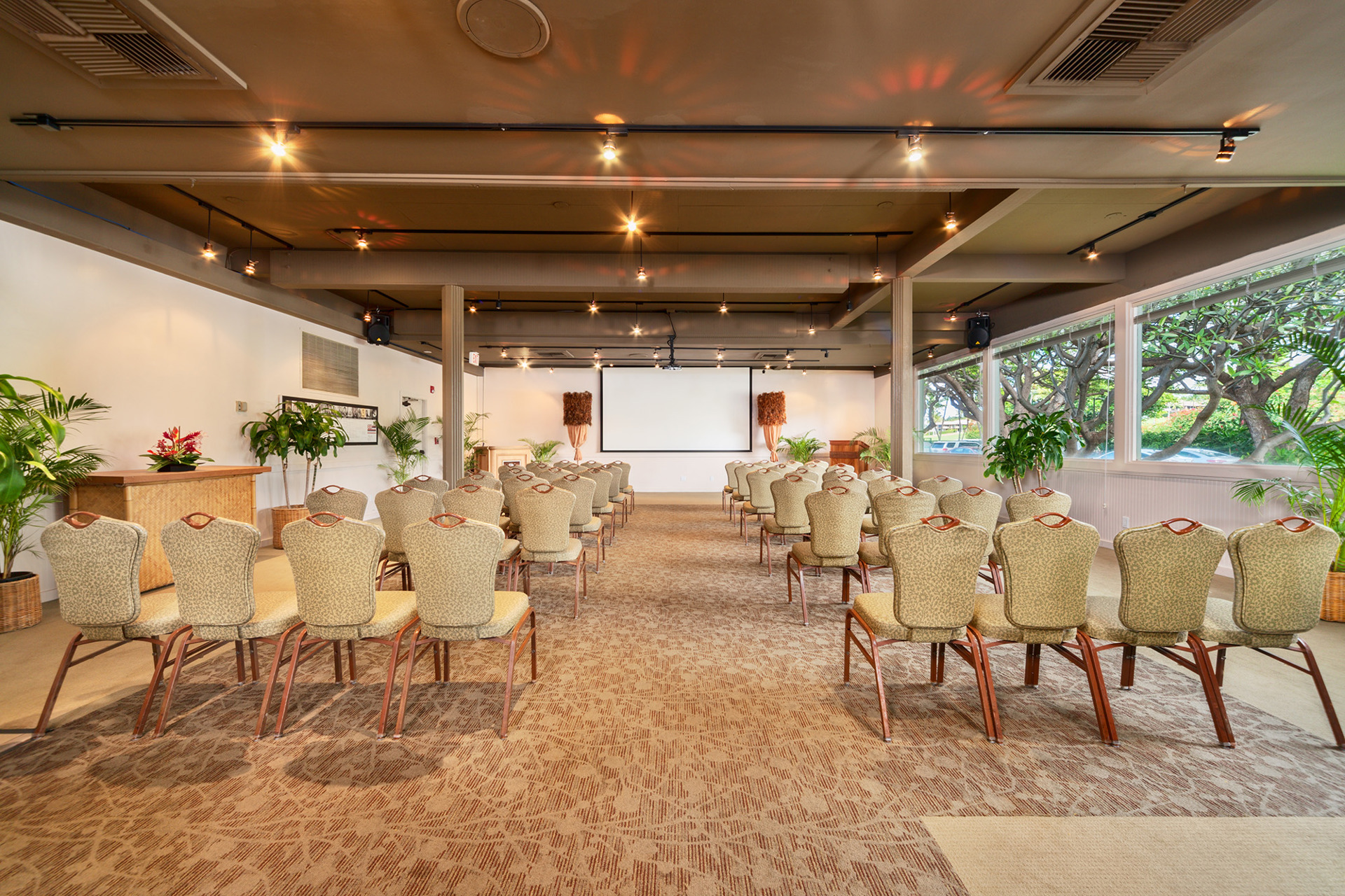 Looking for a small venue that would be perfect for a conference or board meeting? Our Puapuaʻi room is the ideal space. Approximately 550 square feet, with a seating capacity of 30 guests.