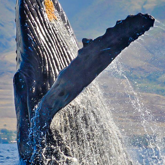 - Tail and Pectoral Slaps: A powerful movement of a humpback's tail flukes and fins onto the water's surface;