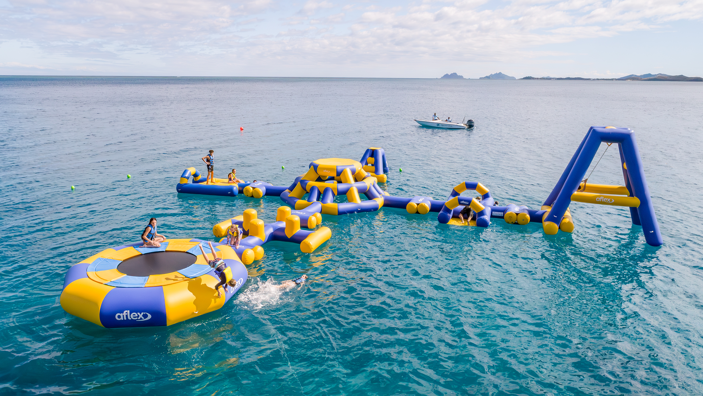 A short boat ride away, Castaway Island, Fiji takes ocean adventure to the next level. Known for its pristine waters and laid-back island charm, Castaway now features a brand-new floating waterpark anchored just offshore. Kids (and grown-ups) can bounce, slide and splash on inflatable obstacles, adding a whole new dimension to island fun. Afterward, guests can snorkel off the beach, hop in a catamaran, or simply unwind in a hammock with a view of the reef.