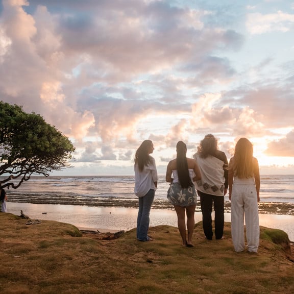 The E Ala E Sunrise Ceremony is held on Nukoli'i Beach, led by cultural practitioner Kumu Maka Herrod. As the first light breaks over the Pacific, you'll join in oli (chant) and reflection, connecting to the land, sea, and ancient Hawaiian traditions. It's a profoundly centering way to start the day — and it's complimentary for resort guests.